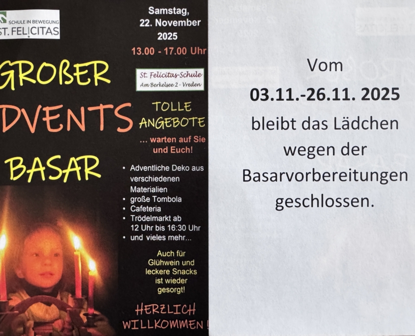 !! Aufgrund der Basarvorbereitungen bleibt unser Lädchen vom 03.11. – 26.11.2025 geschlossen !!