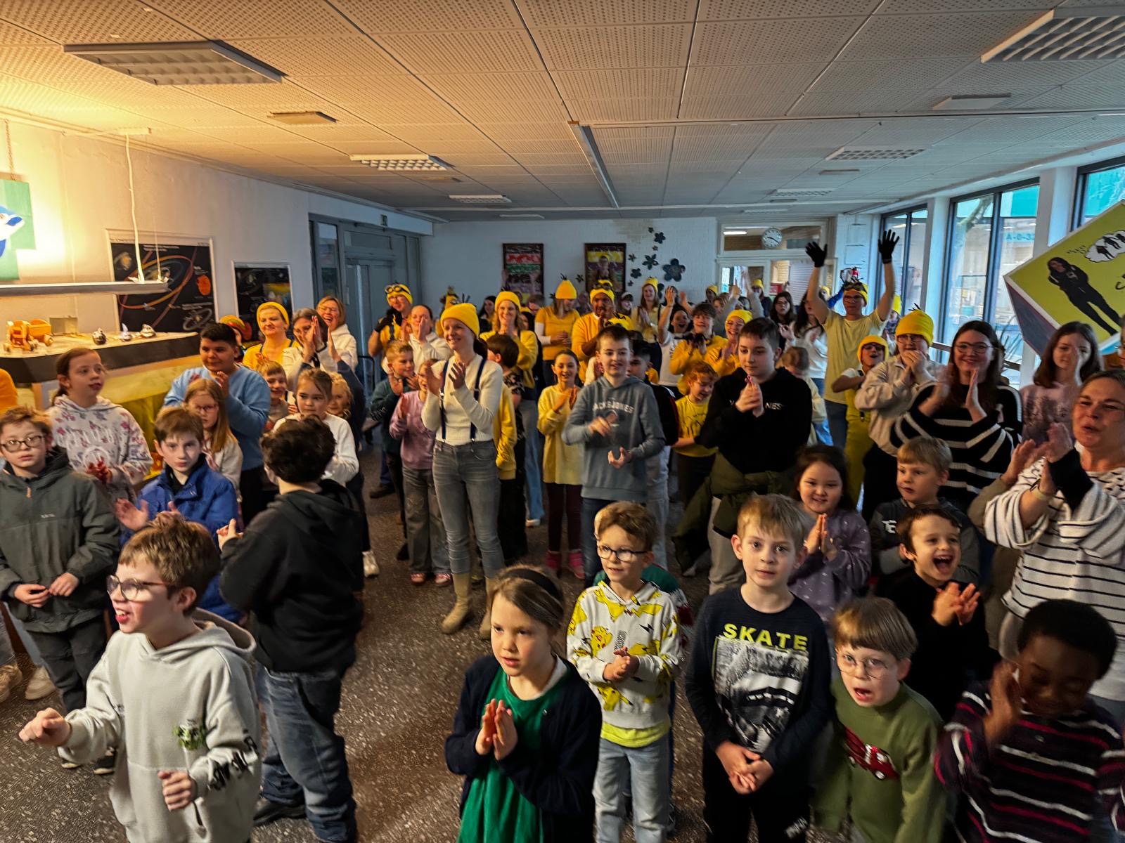- Montag: Die Schüler*innen aller Stufen überraschten Hausi um 9:15 Uhr mit einem Minions-Flashmob – eine Hommage an seine große Sammelleidenschaft für die gelben Figuren.