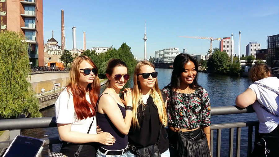 Begleitet von bestem Wetter während der ganzen Woche schauten wir uns zusammen zunächst viele Sehenswürdigkeiten an. Mit dem Boot, dem Bus und teilweise zu Fuß durchkreuzten wir Berlin-Mitte und bestaunten u.a. die East-Side-Gallery, das Rote Rathaus, viele alte Gebäude aus der Kaiserzeit, den Berliner Hauptbahnhof, das Reichstagsgebäude, das Brandenburger Tor, das Holocaust-Denkmal sowie den Potsdamer Platz. Am Abend des Dienstags ging es dann gemeinsam in die aus dem TV bekannte Diskothek „Matrix“.