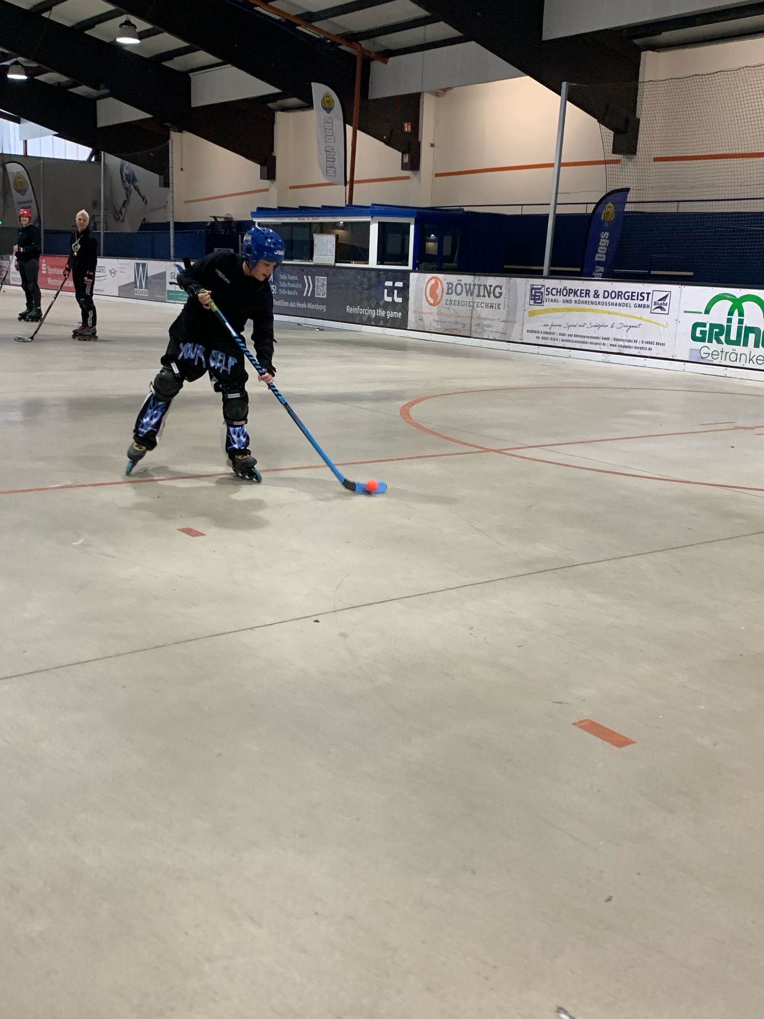 Nach einer kurzen Einweisung in die Grundlagen durften die Kinder selbst aufs „Eis“ und unter fachkundiger Anleitung erste Übungen absolvieren. Dabei stand nicht nur das Inliner-Fahren im Vordergrund, sondern auch das richtige Führen des Balls sowie einfache Spieltechniken. Die Begeisterung war groß, und einige der jungen Teilnehmer*innen zeigten durchaus Talent.