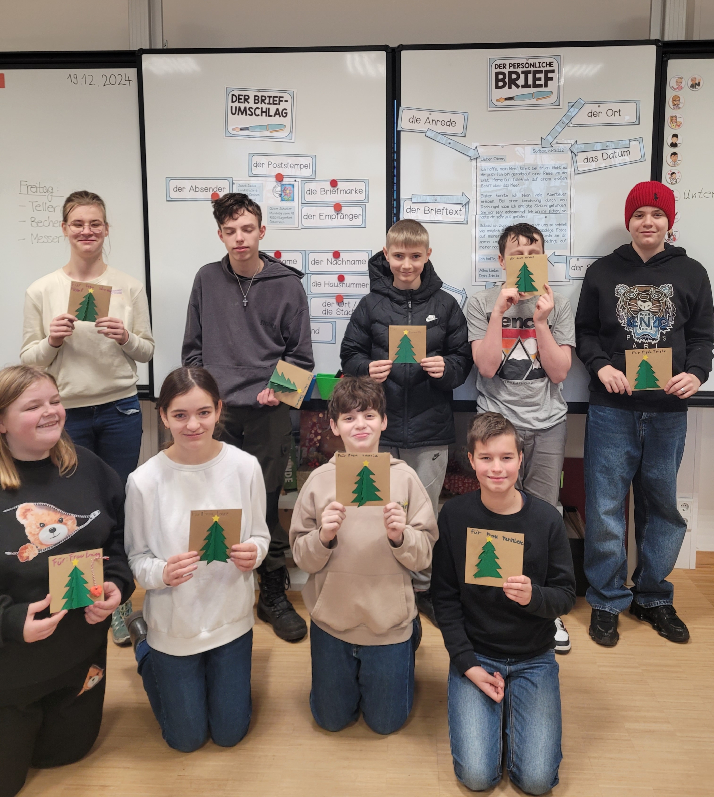 In der Vorweihnachtszeit startete die Klasse 7b der St. Felicitas-Schule ein besonderes Projekt mit dem Seniorenzentrum St. Ludger in Vreden. Im Rahmen des Deutschunterrichts zum Thema „Persönliche Briefe“ schrieben die Schülerinnen und Schüler jeweils einem Bewohner bzw. einer Bewohnerin einen Kennenlernbrief, in dem sie sich vorstellten, Fragen stellten und von ihren Hobbys und Interessen erzählten. Im Gegenzug erhielten sie Antwortbriefe aus dem Seniorenzentrum. Es folgte ein Briefaustausch zu Weihnachten und Karneval, der auf beiden Seiten für viel Freude sorgte. Im Kunstunterricht bastelten die Schülerinnen und Schüler dafür kreative Karten.