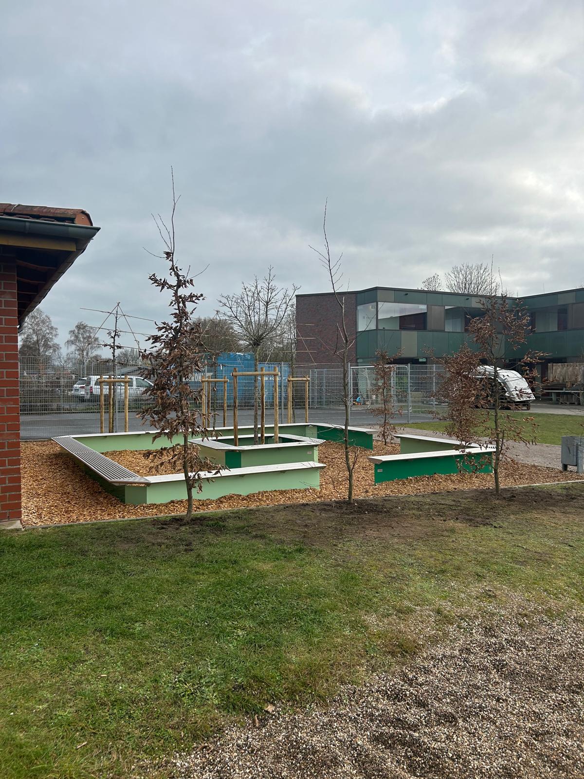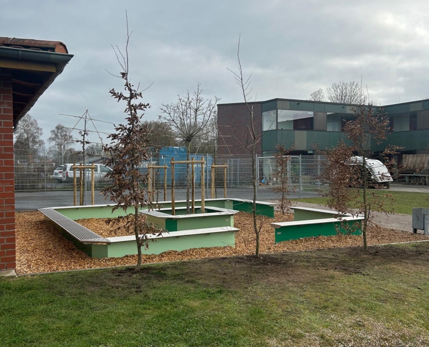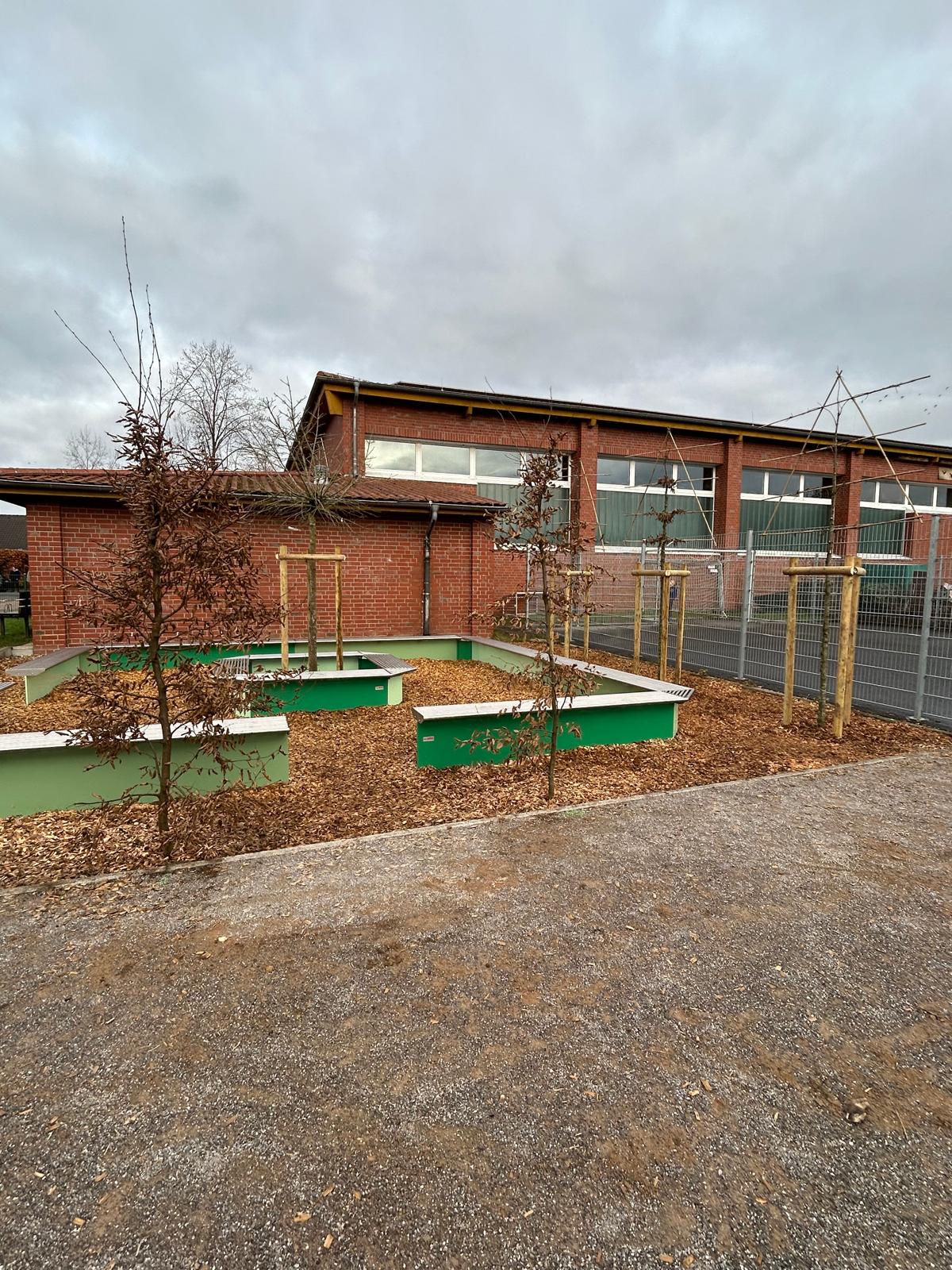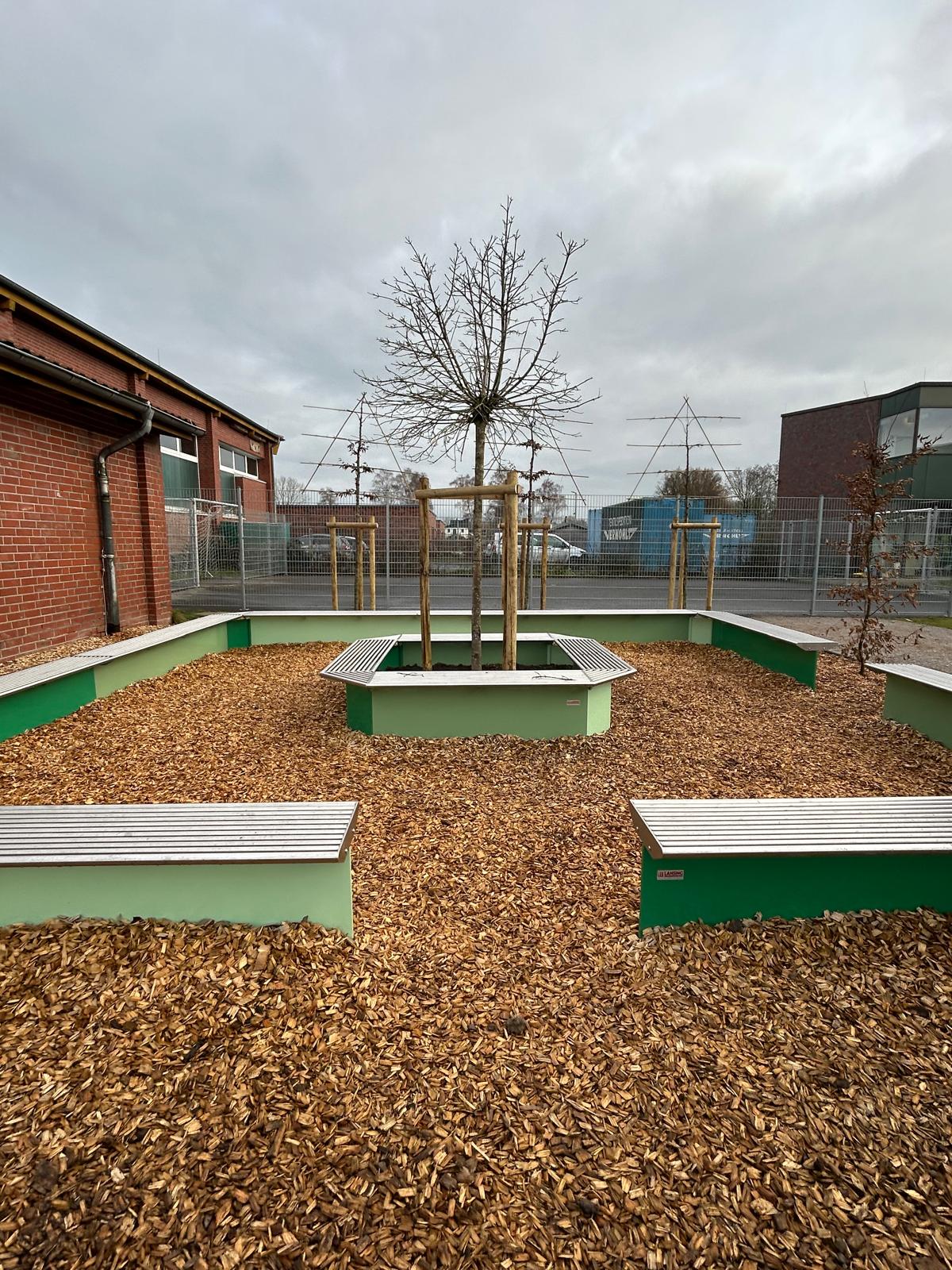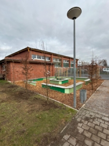 Ein besonderes Highlight ist die neu gepflanzte Beschattung, die angenehmen Schatten spendet und sich harmonisch in die Umgebung des Schul- und Pausenhofs einfügt. So wird das Lernen an der frischen Luft zu einem noch erholsameren und inspirierenden Erlebnis.