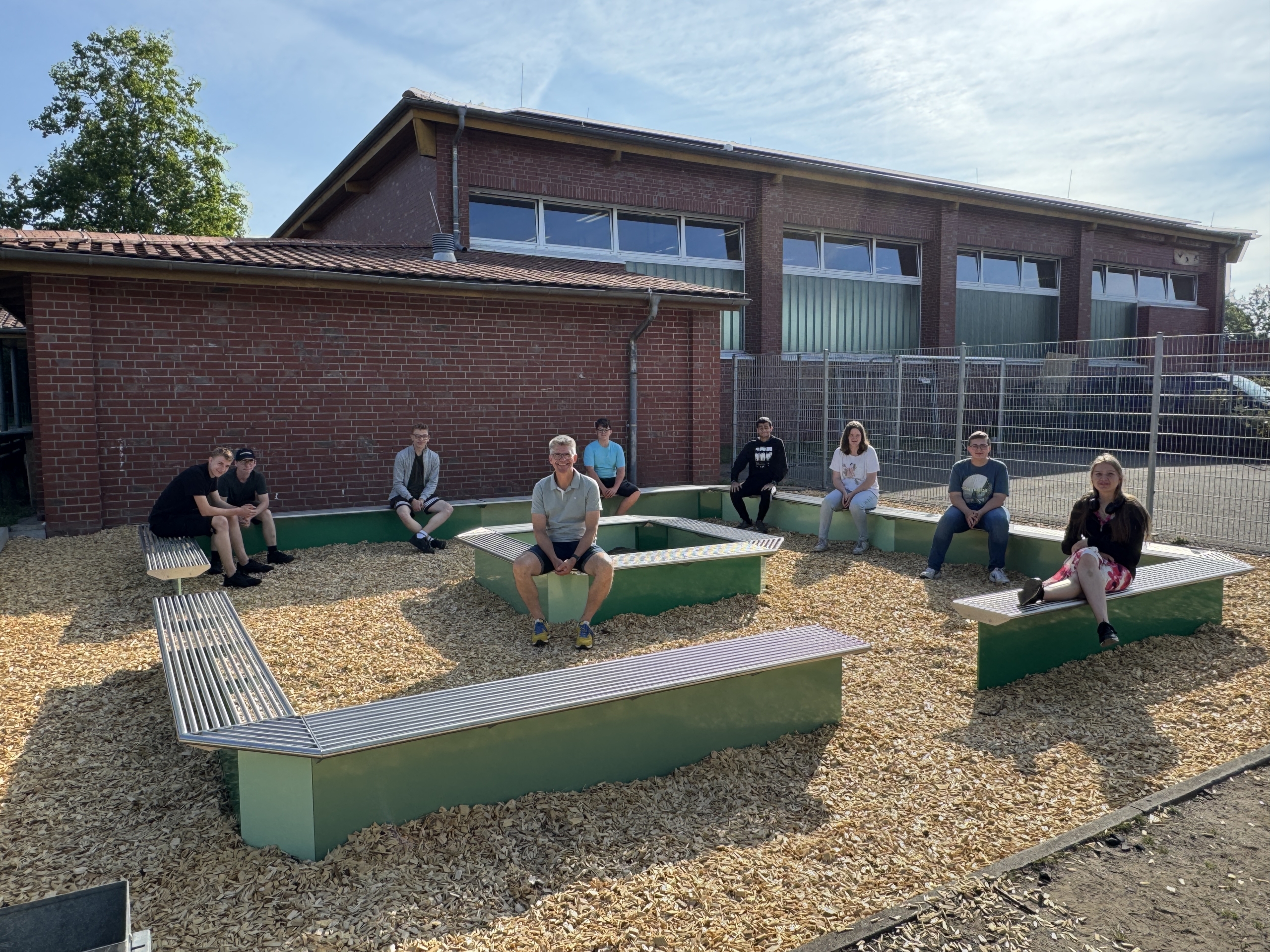 Wir freuen uns, Ihnen heute unseren neuen Außenlernort vorstellen zu können. In Zusammenarbeit mit der renommierten Firma Lansing Varioform haben wir einen besonderen Platz geschaffen, der für alle Stufen, insbesondere die Oberstufe, als Klassenzimmer im Freien sowie als Ort der Entspannung dient.