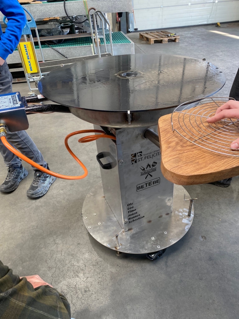 Ein ganz besonderer Moment für die St. Felicitas-Schule: Heute präsentierten unsere Schülerinnen und Schüler erstmals den Grill, den sie im Rahmen einer Kooperation mit der Firma BeTeBe für die Vredener Wirtschaftschau „Aufwind“ gebaut haben.