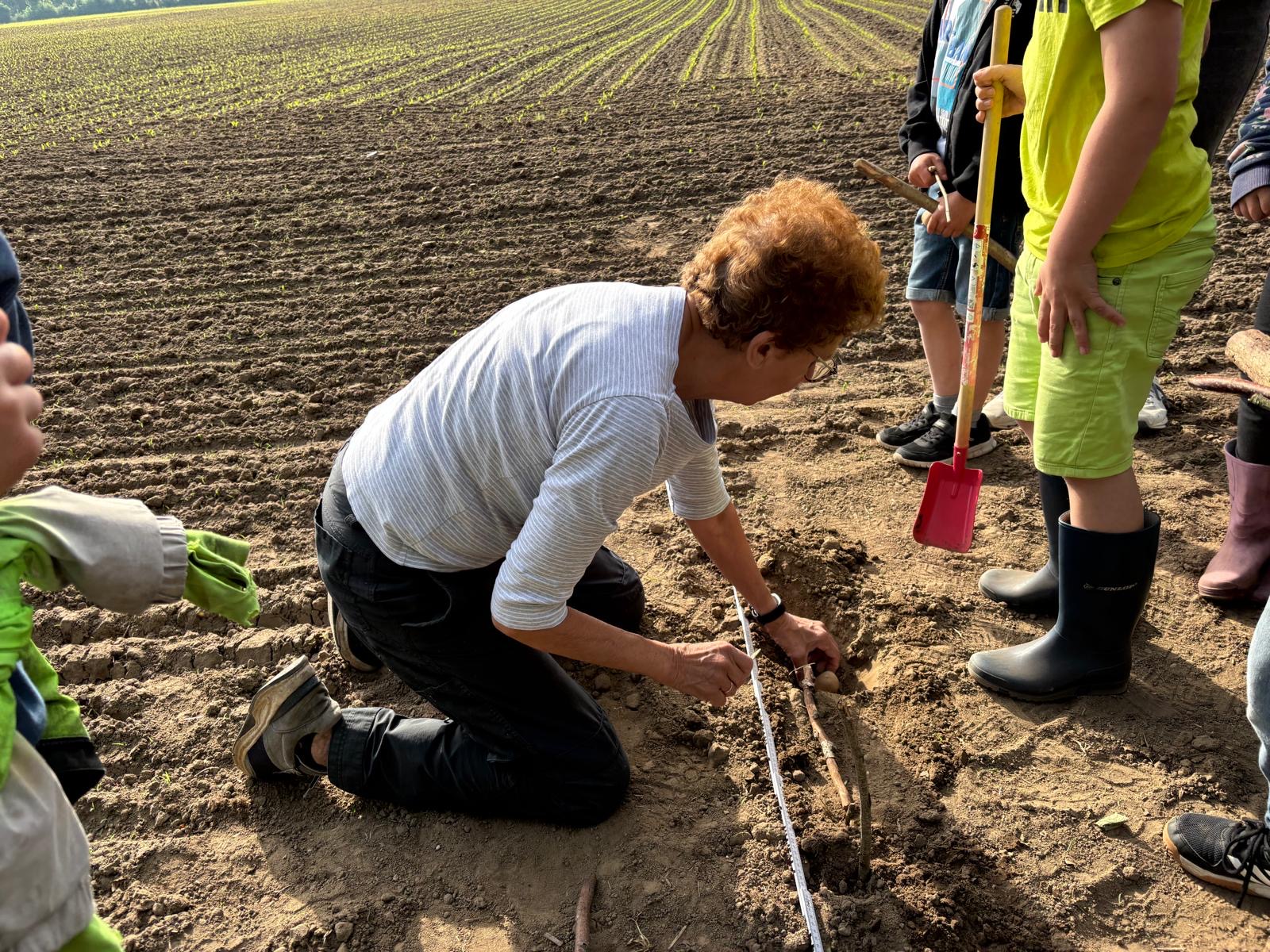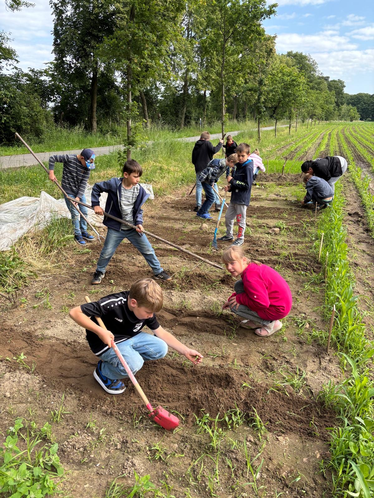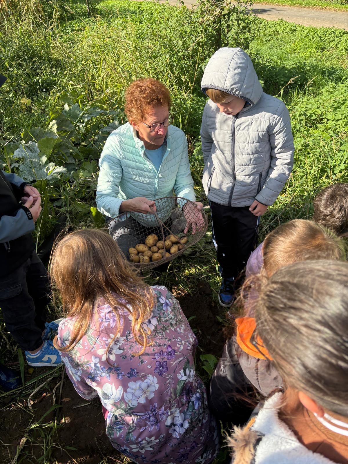 Begleitet von Frau Lösing und dem Team der Schule lernten die Kinder zunächst, wie Kartoffeln gepflanzt werden. Mit viel Begeisterung wurden die ersten Reihen gesetzt – und über die Monate hinweg gepflegt und beobachtet. Als es dann endlich Zeit für die Ernte war, wurde gemeinsam gegraben, gesammelt und gestaunt: So viele Kartoffeln!