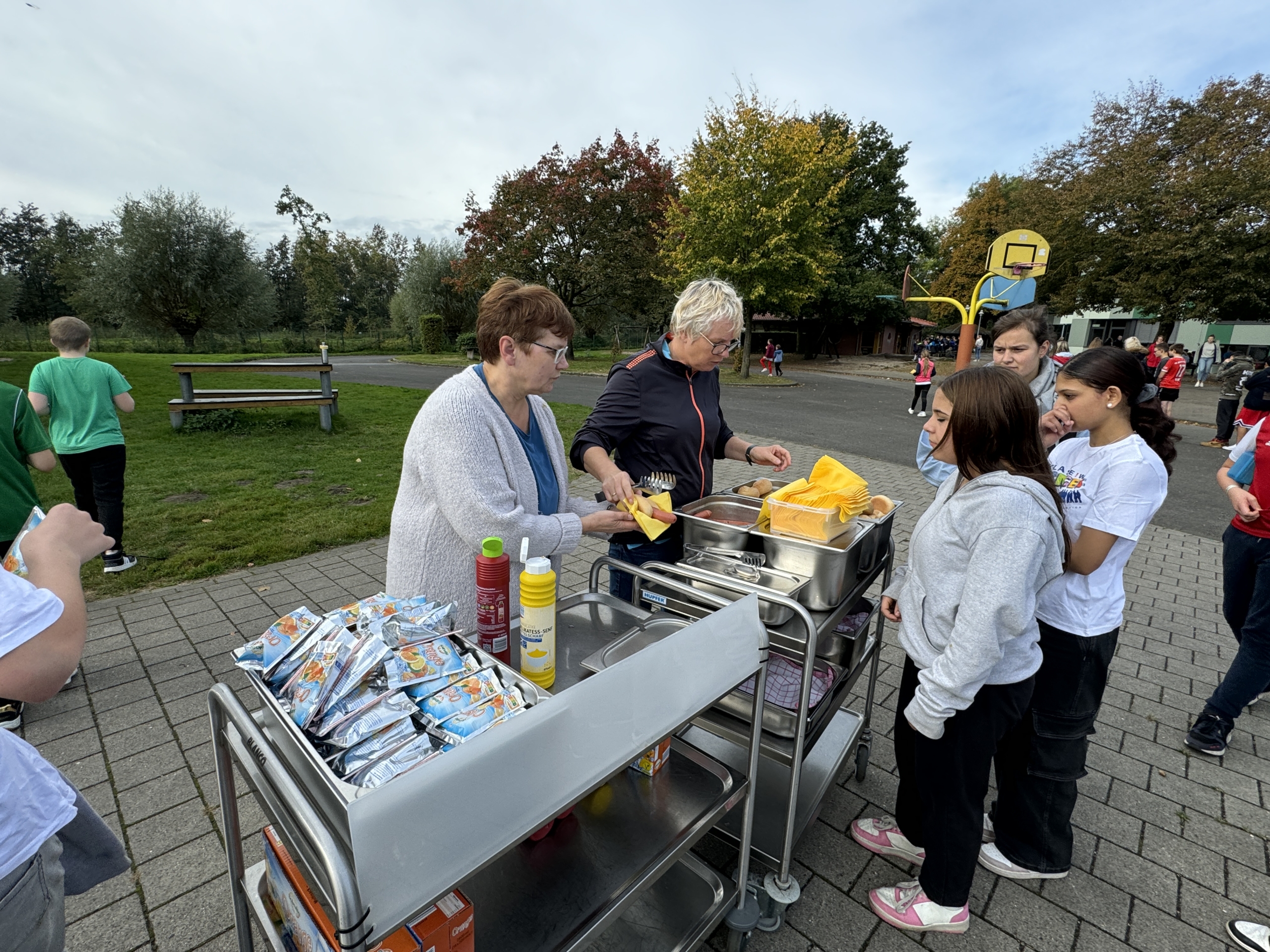Nach dem Lauf gab es zur Stärkung für alle eine leckere Wurst im Brötchen, die von den Läufer*innen sichtlich genossen wurde. Die durch den Lauf erzielten Einnahmen kommen dem Förderverein der St. Felicitas-Schule zugute, der damit zahlreiche Projekte unterstützt, die den Schulalltag bereichern.