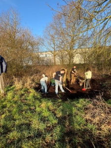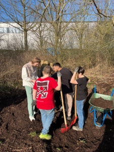 Große Freude bei der Klimaretter-AG der St. Felicitas-Schule: Unser im vergangenen Jahr angelegtes Biotop entwickelt sich hervorragend und wird von der Natur bereits sehr gut angenommen.