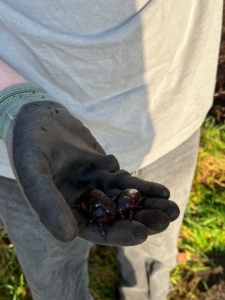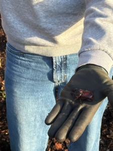 Bei den regelmäßigen Pflege- und Beobachtungsarbeiten der AG konnten die Schülerinnen und Schüler nun eine besondere Entdeckung machen: Mehrere Nashornkäfer wurden im Bereich des Biotops gefunden. Diese beeindruckenden und eher selten zu sehenden Tiere fühlen sich offenbar in dem neu geschaffenen Lebensraum wohl.