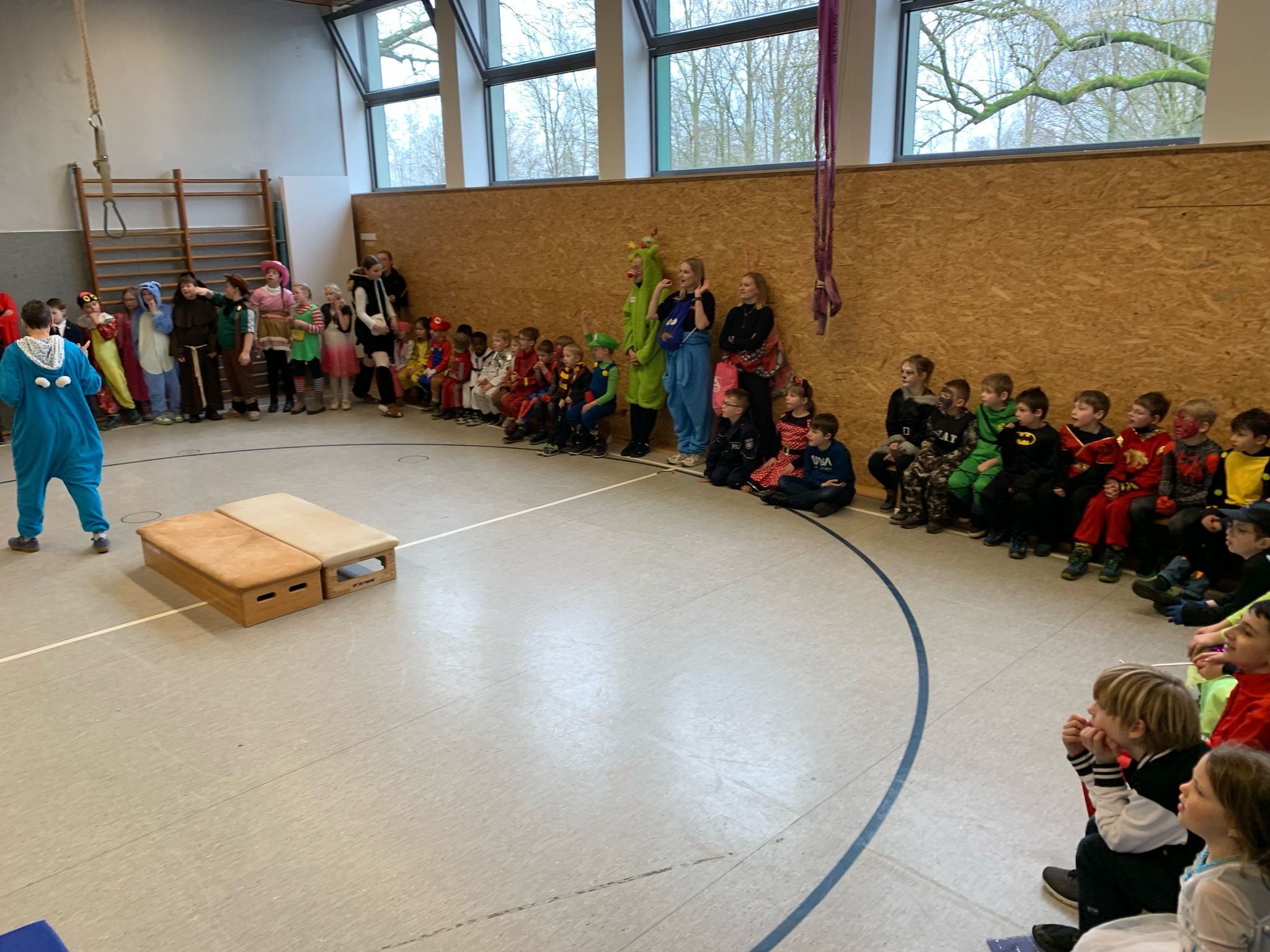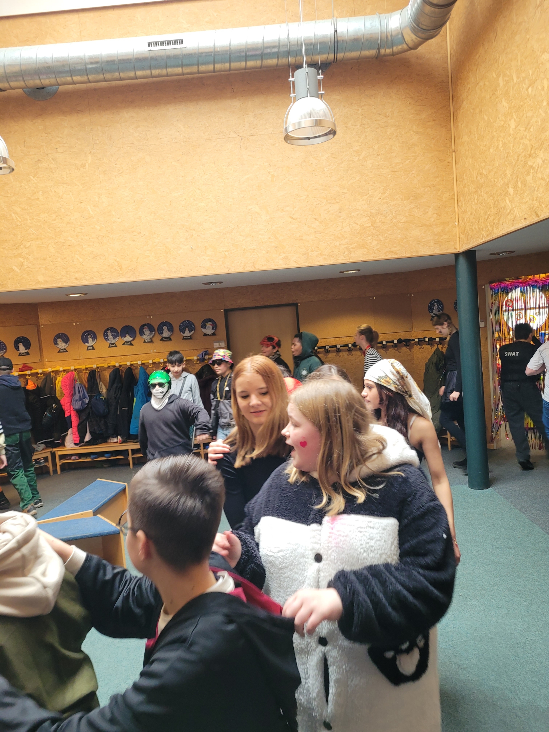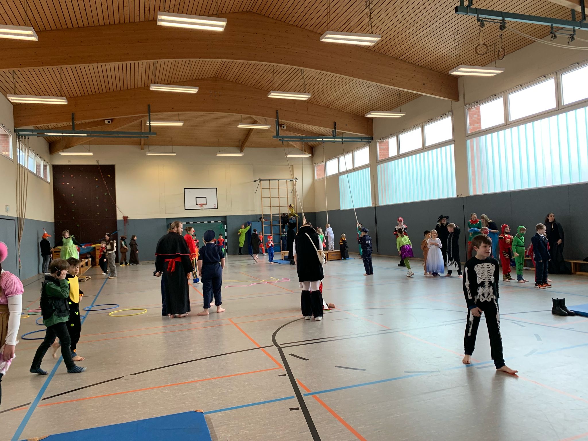 Ein besonderes Highlight des Tages war die große Polonaise, die sich durch die gesamte Schule schlängelte. Mit lauter Musik und viel Freude zogen die Kinder gemeinsam mit den Lehrkräften durch die Gänge und verbreiteten eine mitreißende Karnevalsstimmung.