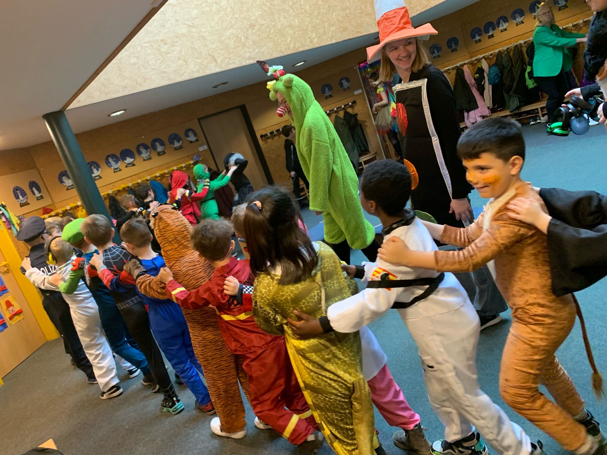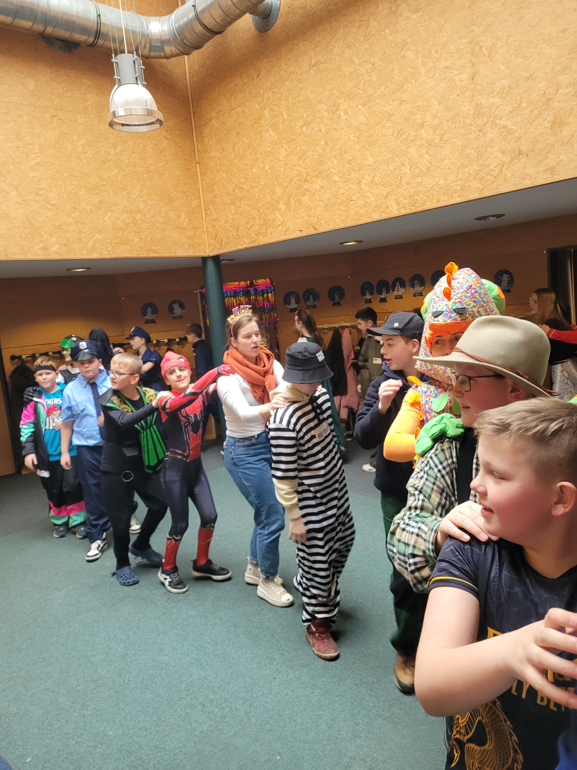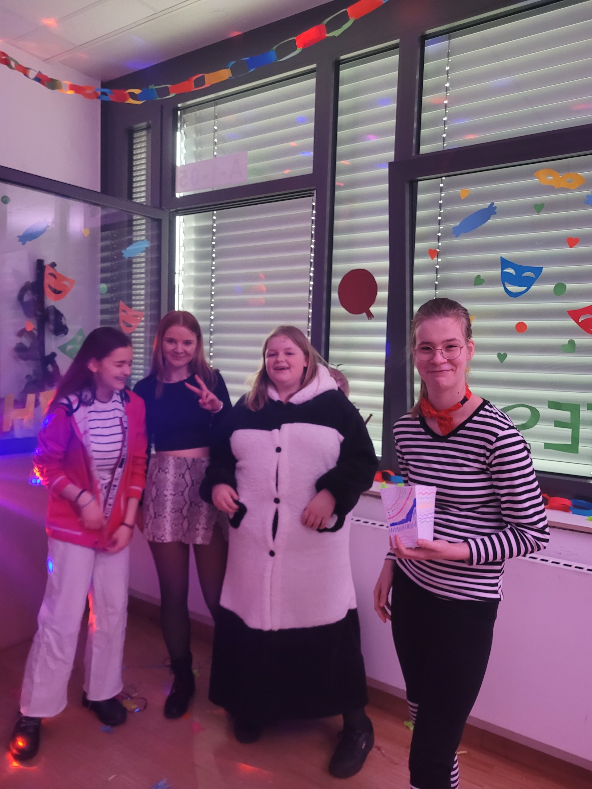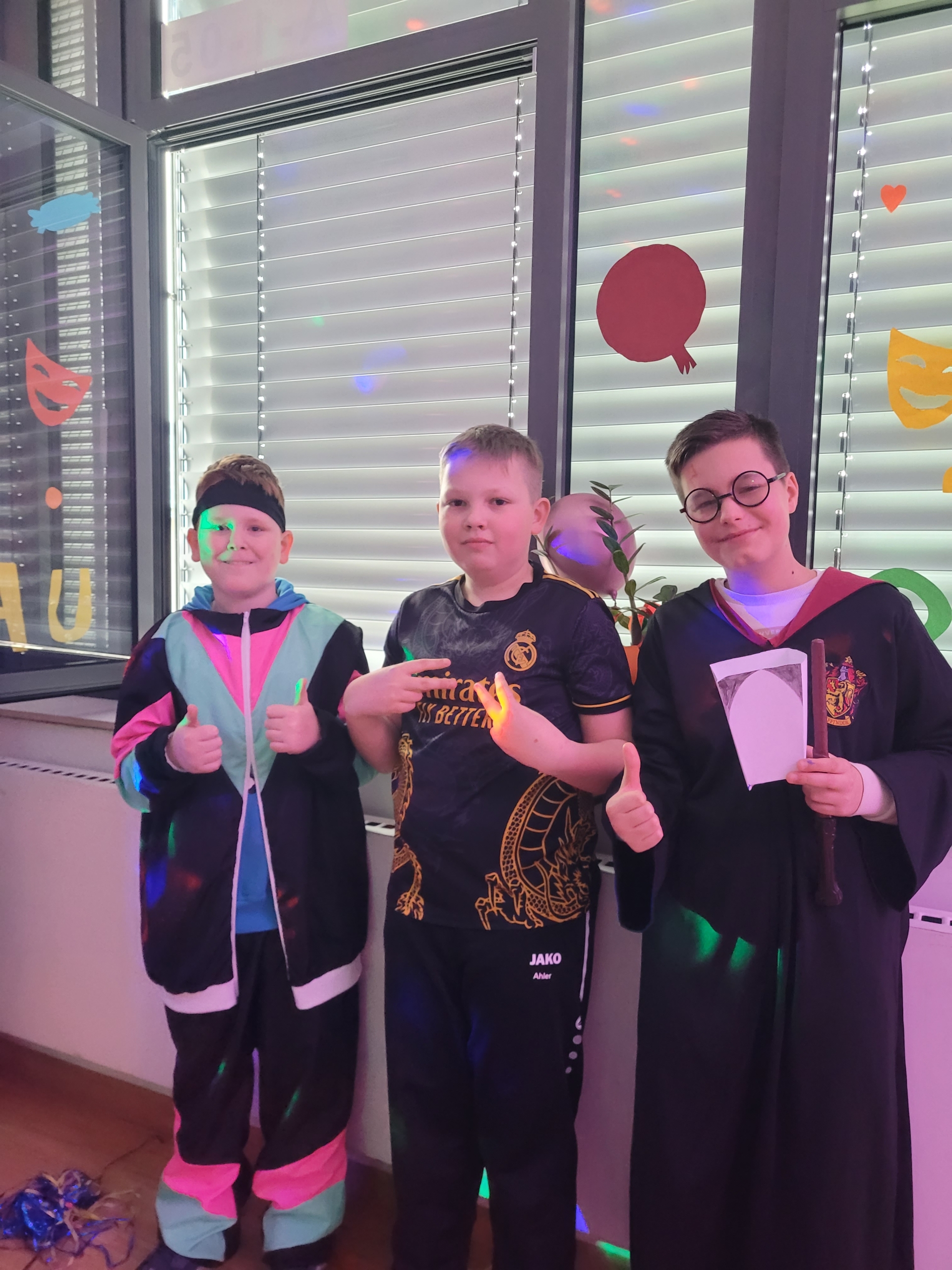 Ein besonderes Highlight des Tages war die große Polonaise, die sich durch die gesamte Schule schlängelte. Mit lauter Musik und viel Freude zogen die Kinder gemeinsam mit den Lehrkräften durch die Gänge und verbreiteten eine mitreißende Karnevalsstimmung.