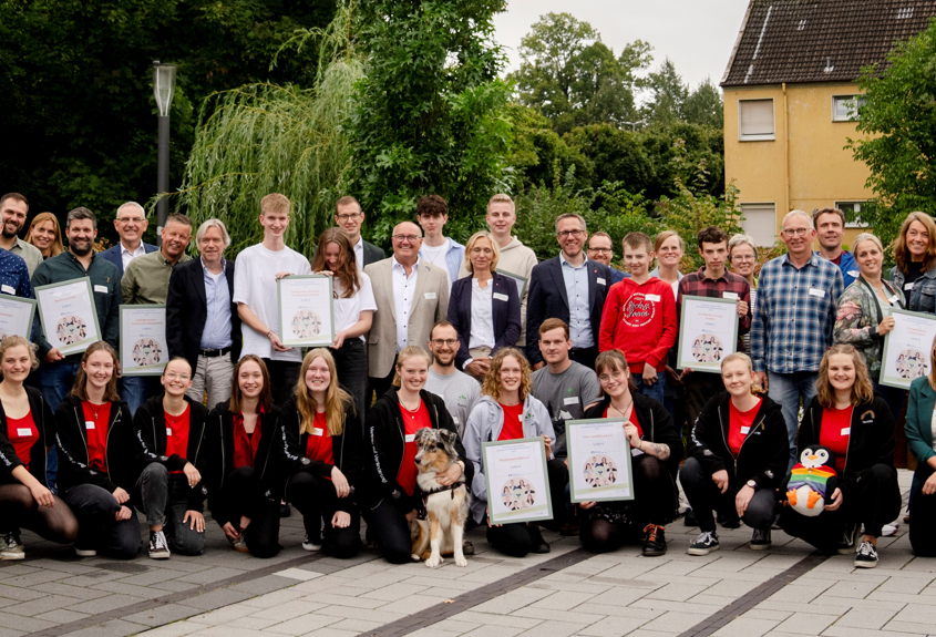 Den Preis nahm Frau Elisabeth Ingenhorst, 1. Vorsitzende des Fördervereins, entgegen. Begleitet wurde sie von Stefan Becking und Jürgen Gesing, die maßgeblich an der Gestaltung unserer außerschulischen Lernorte wie Schulgarten, Biotop und Waldlehrpfad beteiligt sind. Ebenso dabei war Frau Lena Sendfeld, Klassenlehrerin von zahlreichen Schüler*innen, die aktiv in die Projekte eingebunden sind.